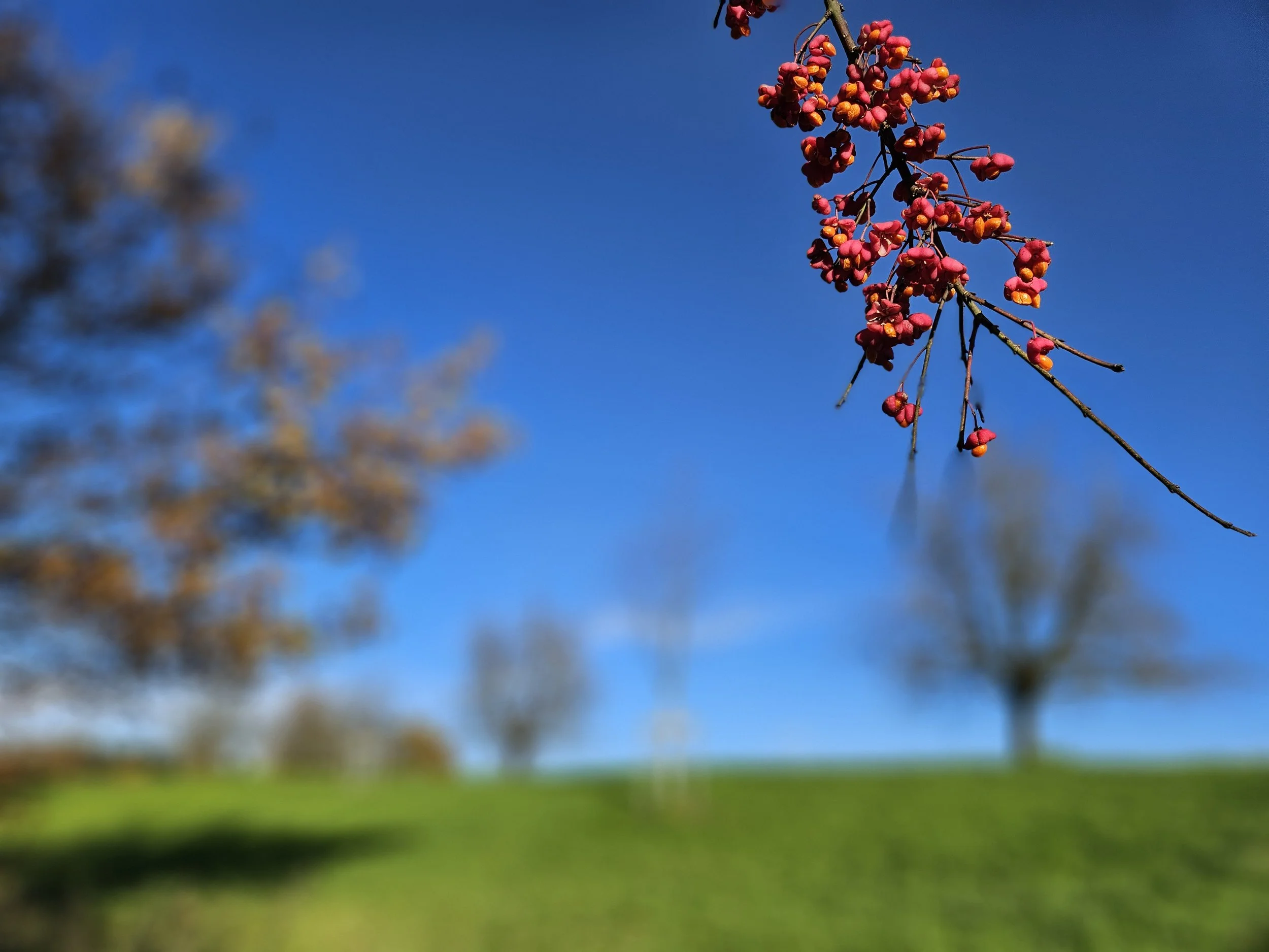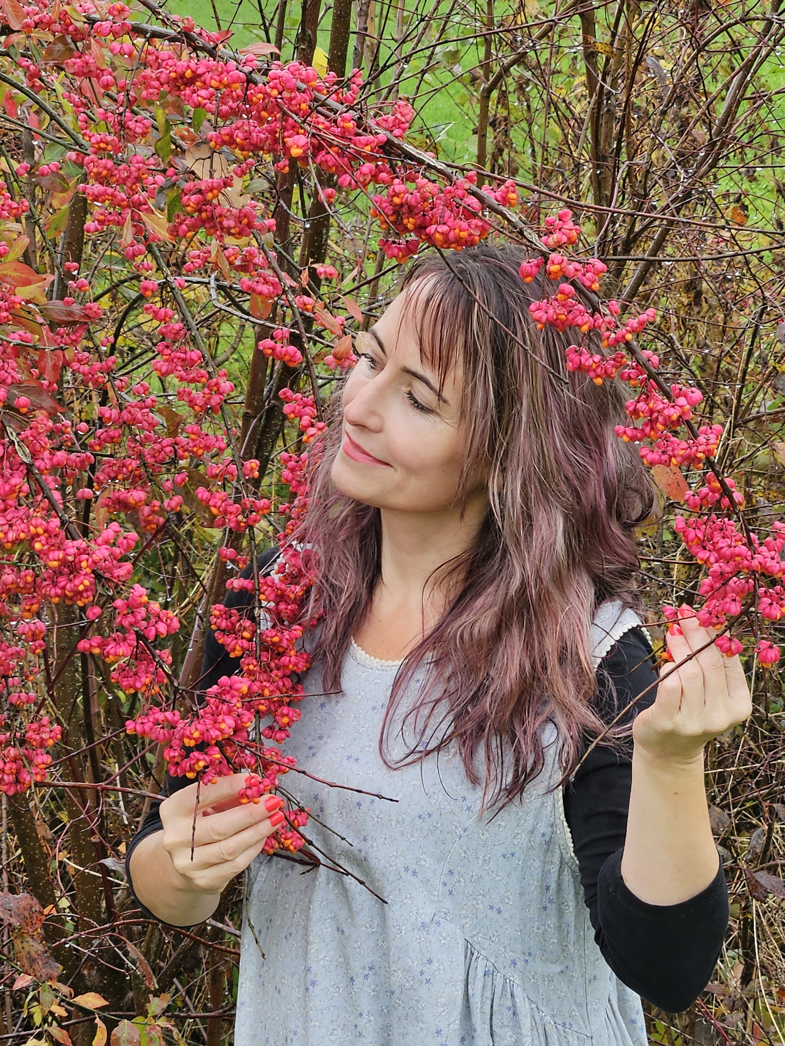 Am Fototermin: ZAUBERhafter Spindelstrauch – in voller Früchtepracht. Welch WUNDERsamer Bote. Seine Spindel begleitet naturmagisch, beim Weben von Lebensfäden.